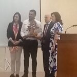 ولقد قدم رئيس المركز السيد دانيال خوري في المناسبة للدكتور كامل مهنا أرزة لبنان من خشب أرز بشري.