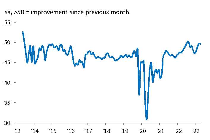 مؤشر مدراء المشتريات يسجل في نيسان 2023 قراءة قريبة جداً من أعلى مستوى للمؤشر في سبعة أشهر في آذار من العام ذاته