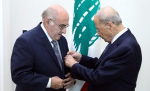 منح رئيس الجمهورية العماد ميشال عون وسام الأرز الوطني من رتبة ضابط، إلى نائب رئيس المجلس الوطني للإعلام المرئي والمسموع والمشرف على موقع “الانتشار” الزميل ابراهيم عوض، وسام الأرز الوطني من رتبة ضابط.
