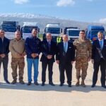 تنفيذاً للتوجيهات الملكية السامية بإرسال قافلة مساعدات اغاثية مقدمة للجمهورية اللبنانية، استقبلت بعد ظهر اليوم قافلة المساعدات والمتضمنة (25) شاحنة تابعه للقوات المسلحة الاردنية – الجيش العربي، في قاعدة الرياق الجوية، وكان في الاستقبال العميد بسام نابلسي، الامين العام للهيئة العليا للإغاثة، والعقيد وسيم بشارة، قائد قاعدة الرياق الجوية، اللذين عبرا عن الشكر والامتنان الجزيل لجلالة الملك عبدالله الثاني ابن الحسين المعظم، حفظه الله ورعاه، على دعمه الدائم والثابت للبنان، ووقوف الأردن الى جانب لبنان في كافة الظروف، ورافقني في الاستقبال السكرتير الاول محمد المحادين.