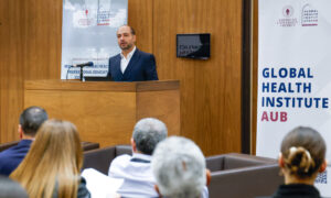 Dr. Zaher Dawy, AUB provost, opened the event, and reaffirmed AUB’s commitment to advancing healthcare education and its responsibility to train professionals capable of addressing challenges in fragile and conflict settings. Dr. Shadi Saleh, founding director of GHI, stressed the critical need to tailor global health education to local contexts. He advocated for a more inclusive and interdisciplinary approach that integrates nursing, pharmacy, physical therapy, and mental health to better equip healthcare professionals to respond to the complexities of conflict settings.
