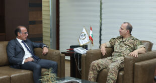 نقر الصورة لتكبيرها alnobtasher : استقبل قائد الجيش العماد رودولف هيكل في مكتبه في اليرزة رئيس مجلس إدارة شركة ألفا جاد ناصيف، وجرى التداول في شؤونٍ مختلفة