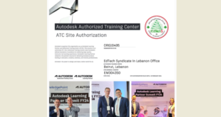نقر الصورة لتكبيرها اعلنت “نقابة تكنولوجيا التربية في لبنان”، في بيان، انه بعد جهود استمرت لنحو ستة أشهر ، تم اعتماد نقابة تكنولوجيا التربية في لبنان من قبل مؤسسة اوتديسك Autodesk العالمية للحلول الهندسية ، من خلال الاجازة للنقابة بأن اصبحت مركزا معتمدا في لبنان ومنطقة الشرق أوسط وشمال أفريقيا، …