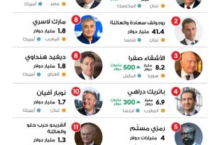 ارتفعت الثروات المجمعة لـ12 مليارديرًا من أصول عربية بنسبة 9 بالمئة إلى 168.6 مليار …