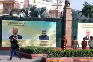 نقر الصورة لنكبيره almontasher عفد الرئيس الروسي فلاديمير بوتين ورئيس الوزراء الهندي ناريندرا مودي محادثات قمة في نيودلهي، حيث احتفت الهند بالزعيم الروسي وأبلغه مودي أن بلاده تدعم جهود السلام في أوكرانيا. يجري بوتين أول زيارة له إلى الهند منذ أربع سنوات، بهدف تعزيز التجارة مع أكبر مشتر للأسلحة الروسية …