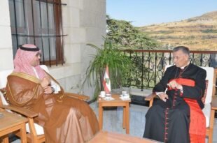 استقبل البطريرك الماروني الكاردينال بشارة بطرس الراعي، في المقر الصيفي للبطريركية بمنطقة #الديمان، اليوم، سفير المملكة العربية السعودية في لبنان وليدبخاري. سفير المملكة لدى لبنان يزور غبطة البطريرك بشارة بطرس الراعي، بالديمان استقبل غبطة البطريرك الماروني الكاردينال بشارة بطرس الراعي، في المقر الصيفي للبطريركية بمنطقة الديمان، اليوم، سفير خادم الحرمين الشريفين …