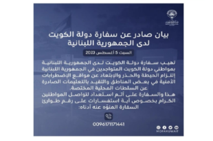 أكمل القراءة »الكويت لمواطنيها في لبنان:التزموا الحيطة والحذر