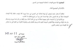 صدر عن دائرة العلاقات العامة في بلدية بيروت التوضيح التالي: رداً على ما ورد في بعض المواقع الاخبارية الالكترونية ووسائل التواصل الاجتماعي عن أن محافظ مدينة بيروت يتعرض لضغط معين من أجل إعطاء رخص الاعلانات على الجسور العامة في مدينة بيروت لشركة محددة دون سواها تنفي دائرة العلاقات العامة في بلدية بيروت …