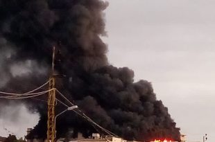فوج اطفاء بيروت توجه الى منطقة الناعمة للمؤازرة في اخماد الحريق الكبير في معمل الكونكورد