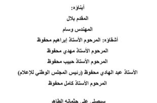 غيب الموت الأستاذ محمد حسن محفوظ شقيق رئيس المجلس الوطني للاعلام عبد الهادي محفوظ والد المقدم بلال محفوظ ، يشيع غداً الخميس في 5 كانون الثاني 2023 من بعد الظهر ويوارى الثرى في جبانة مدينة العرمل.الى ذلك يحدد رئيس المجلس الوطني للإعلام المرئي والمسموع عبد الهادي محفوظ لاحقا مكان وتاريخ …