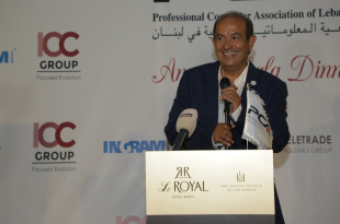 لتكبير الصورة اضغط عليها أقامت جمعية المعلوماتية المهنية في لبنان PCA عشاءها السنوي في أوتيل لو رويال- ضبيه بحضور وزيرة التنمية الإدارية نجلا رياشي عساكر ووزير الإتصالات جوني قرم والنائب الياس حنكش والنائب رازي الحاج وجمع من قطاع المعلوماتية والاتصالات.خلال الحفل، كرمت الجمعية كلاً من مدير عام وزارة الاقتصاد والتجارة …