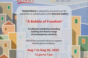 فرنيني : هدفنا نشر ثقافة الإبداع والفن وإعطاء أحلى صورة عن بيروت “لا تترك لبنان قبل أن تحتفظ بقطعة فنية منه”! تحت هذا الشعار تطلق جمعية Rebirth Beirut معرضها الجديد بالتعاون مع “Artscene Gallery” بعنوان “A Bubble of Freedom” أو واحة من الحريّة، وهو كناية عن مجموعة من القطع الفنية …