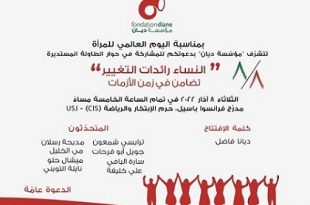 بمناسبة اليوم العالمي للمرأة، تتشرّف “مؤسسة ديان” بدعوتكم للمشاركة في حوار الطاولة المستديرة تحت عنوان “8/8 النساء رائدات التغيير، تضامن في زمن الأزمات”، وذلك يوم الثلاثاء 8 آذار 2022 في تمام الساعة الخامسة مساءً في جامعة القديس يوسف USJ – مدرّج فرانسوا باسيل، حرم الإبتكار والرياضة CISسيتخلّل الحدث مداخلات ومناقشات …