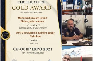 نال كل من المخترعين وعضوي جمعية المبدعين اللبنانيين المهندس محمد قاسم اسماعيل وماهر جعفر عثمان على الميدالية الذهبية وتقييم عالي الدرجة في معرض افريقيا الدولي للإختراعات CU-OCIIP، بمشاركة 72 دولة مختلفة على مشروع AVMS-Super Nebulizer. يذكر أن هذا المشروع كان نال خلال هذا العام: – براءة اختراع من وزارة الاقتصاد …